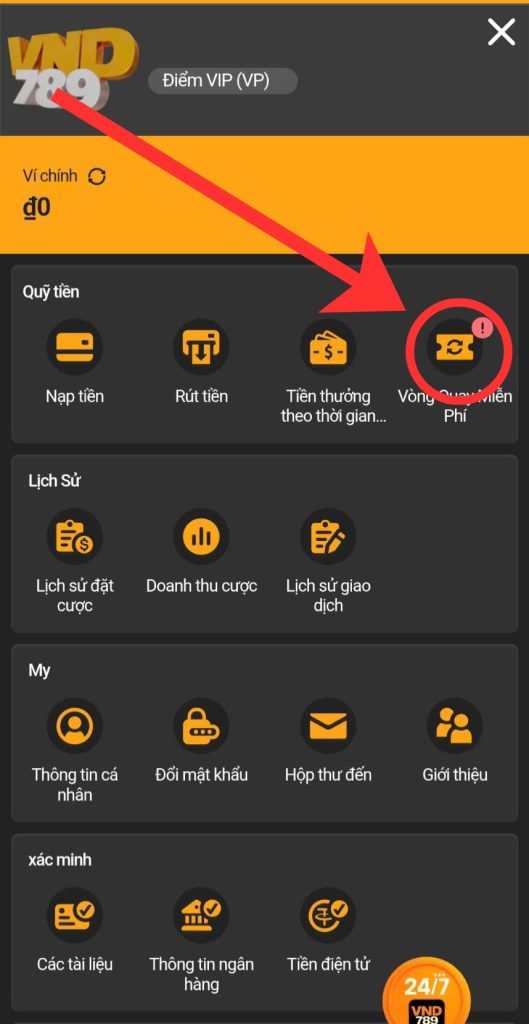 Bước 2: Tìm mục “Vòng Quay Miễn Phí” trong trang cá nhân của bạn.
